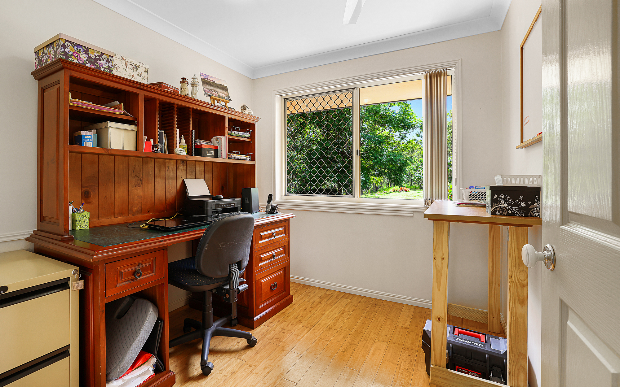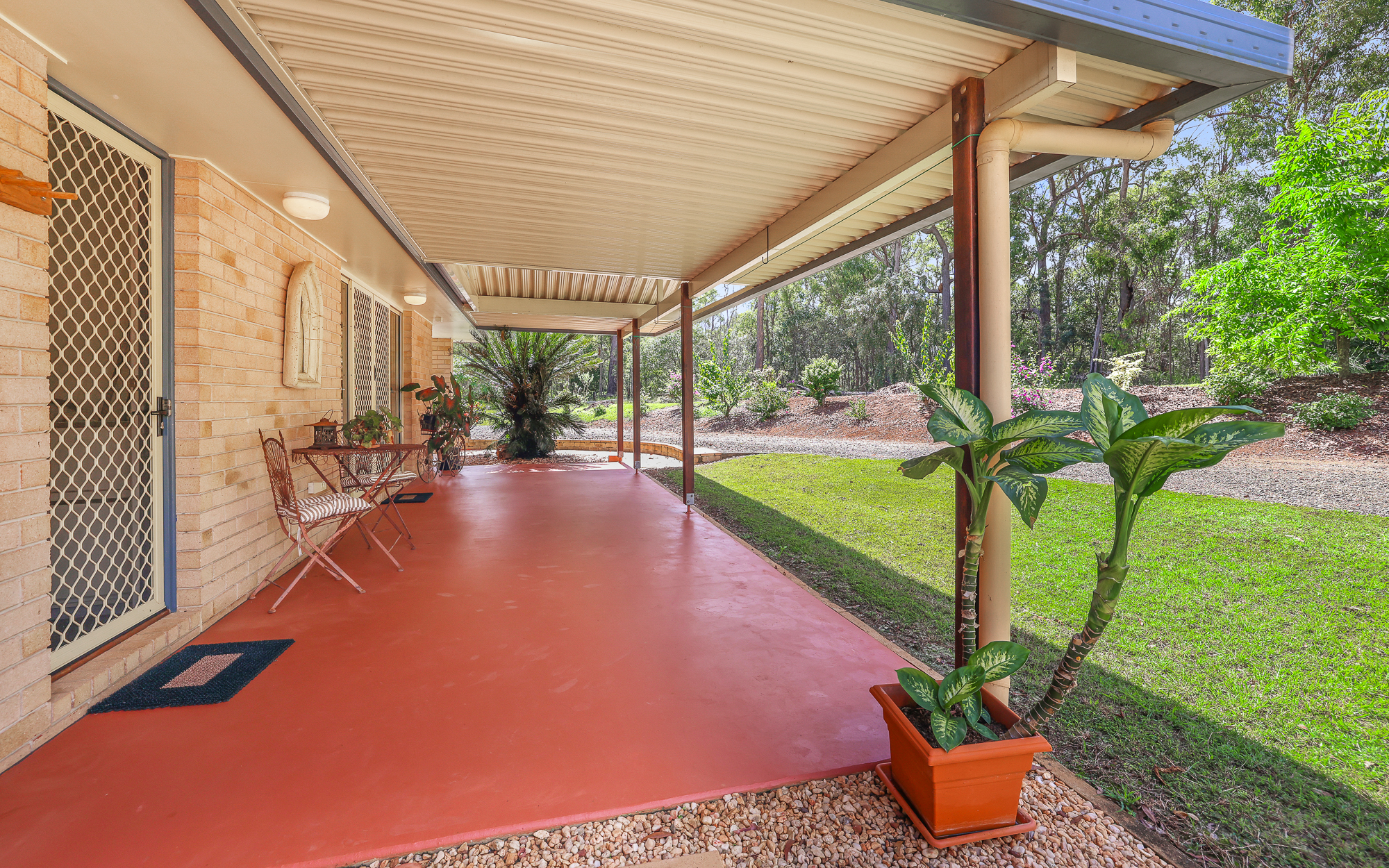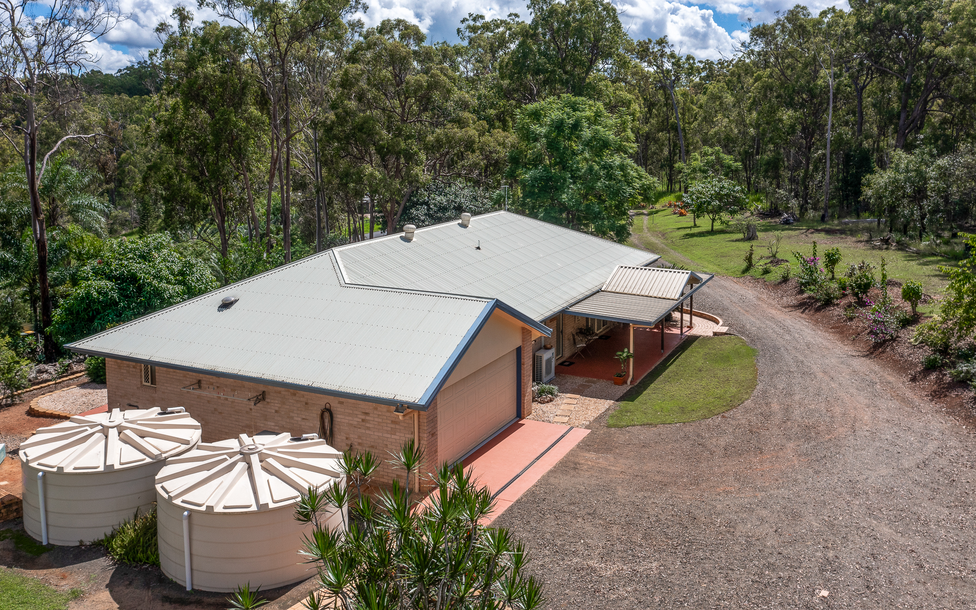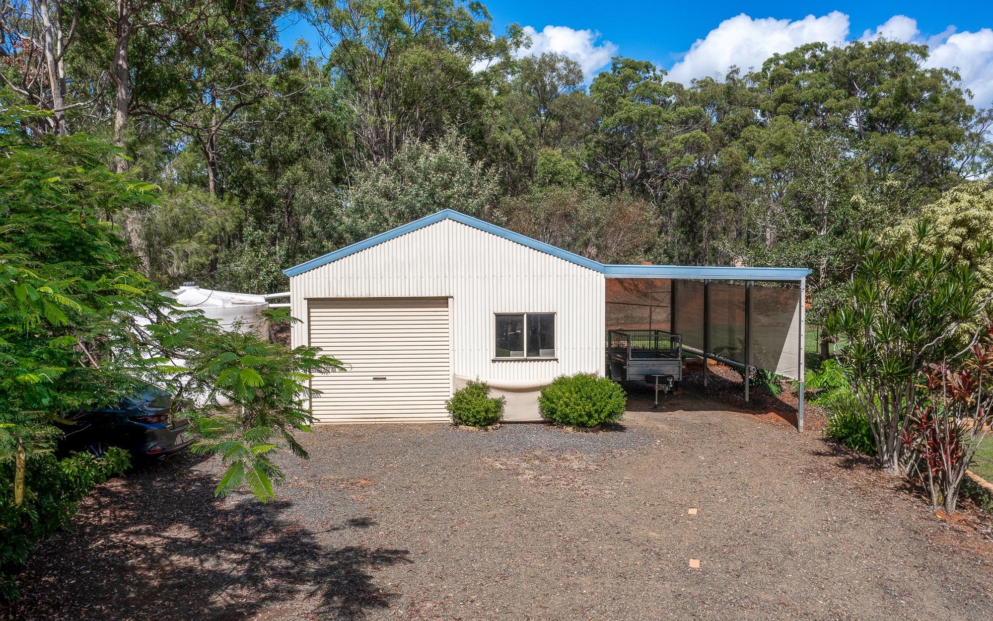 Outdoors, an entertainment area and welcoming front porch offer spaces to unwind and enjoy the serene surroundings. Additionally, a shed with an electric roller door, workshop, and high-clearance carport for the caravan provide practical storage and workspace solutions. Water management on the property is well taken care of with three large water tanks; two at the house and one positioned by the shed, ensuring an adequate water supply for the fenced garden patch and surrounding gardens.