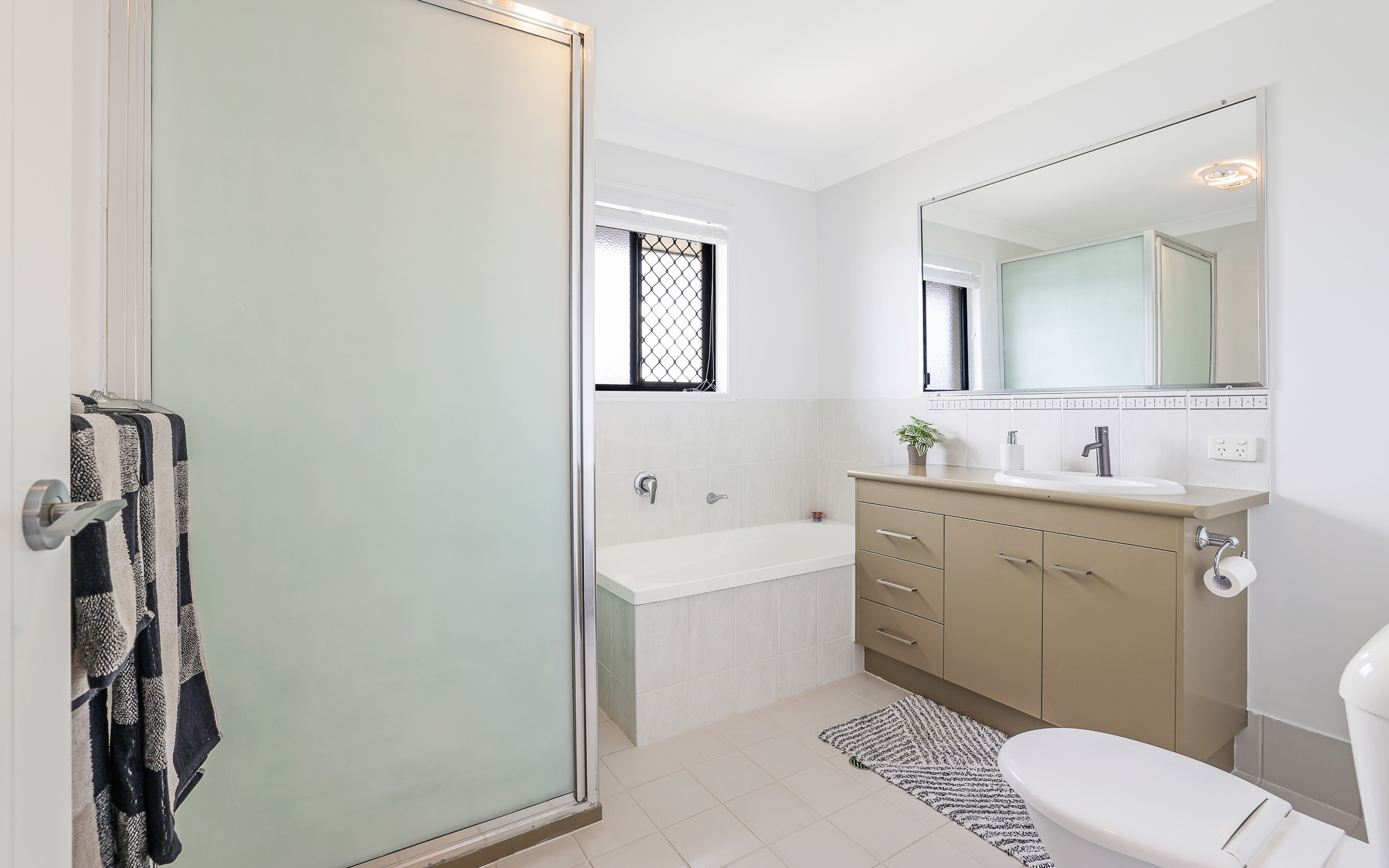 • Main Bathroom: Well-appointed with a separate shower and bathtub for convenience.