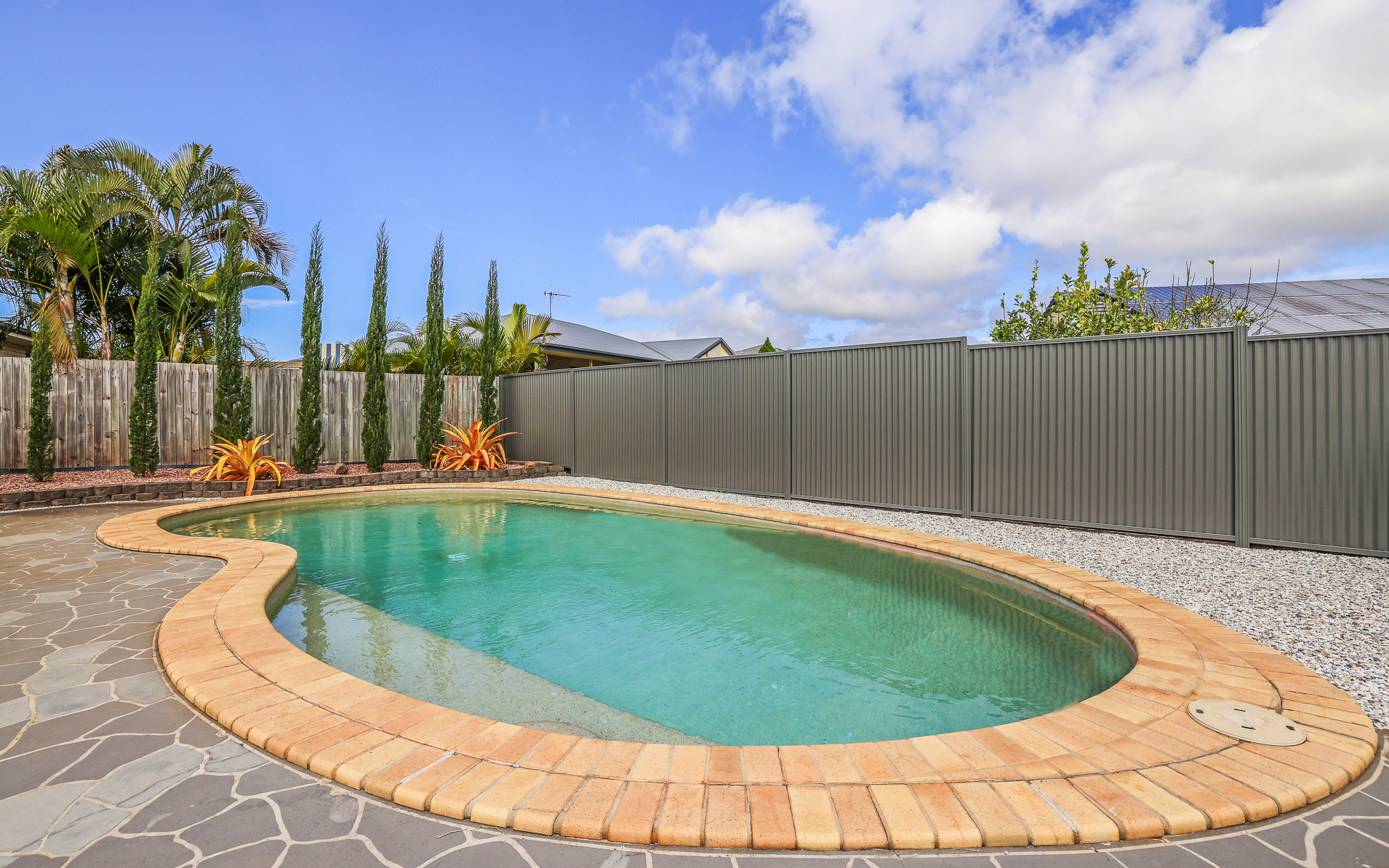 • Outdoor Oasis: Manicured gardens surround a sparkling saltwater pool and a large outdoor entertainment area, creating a perfect setting for relaxation and gatherings.